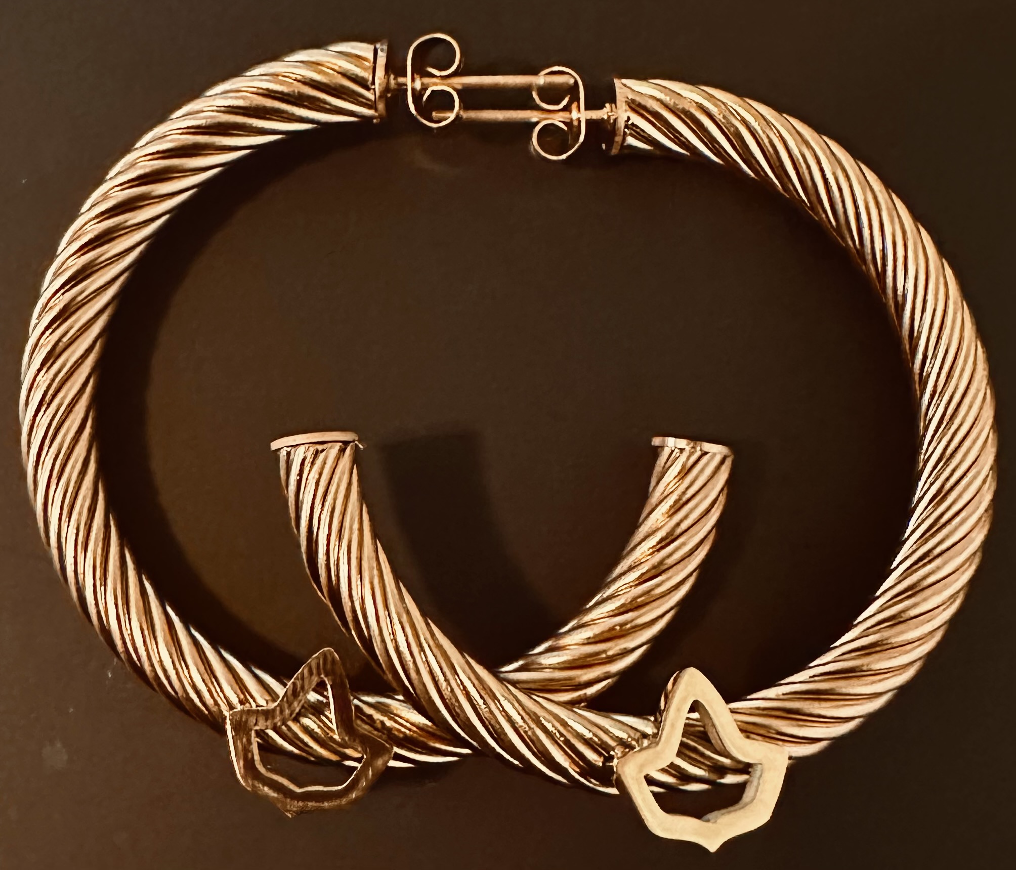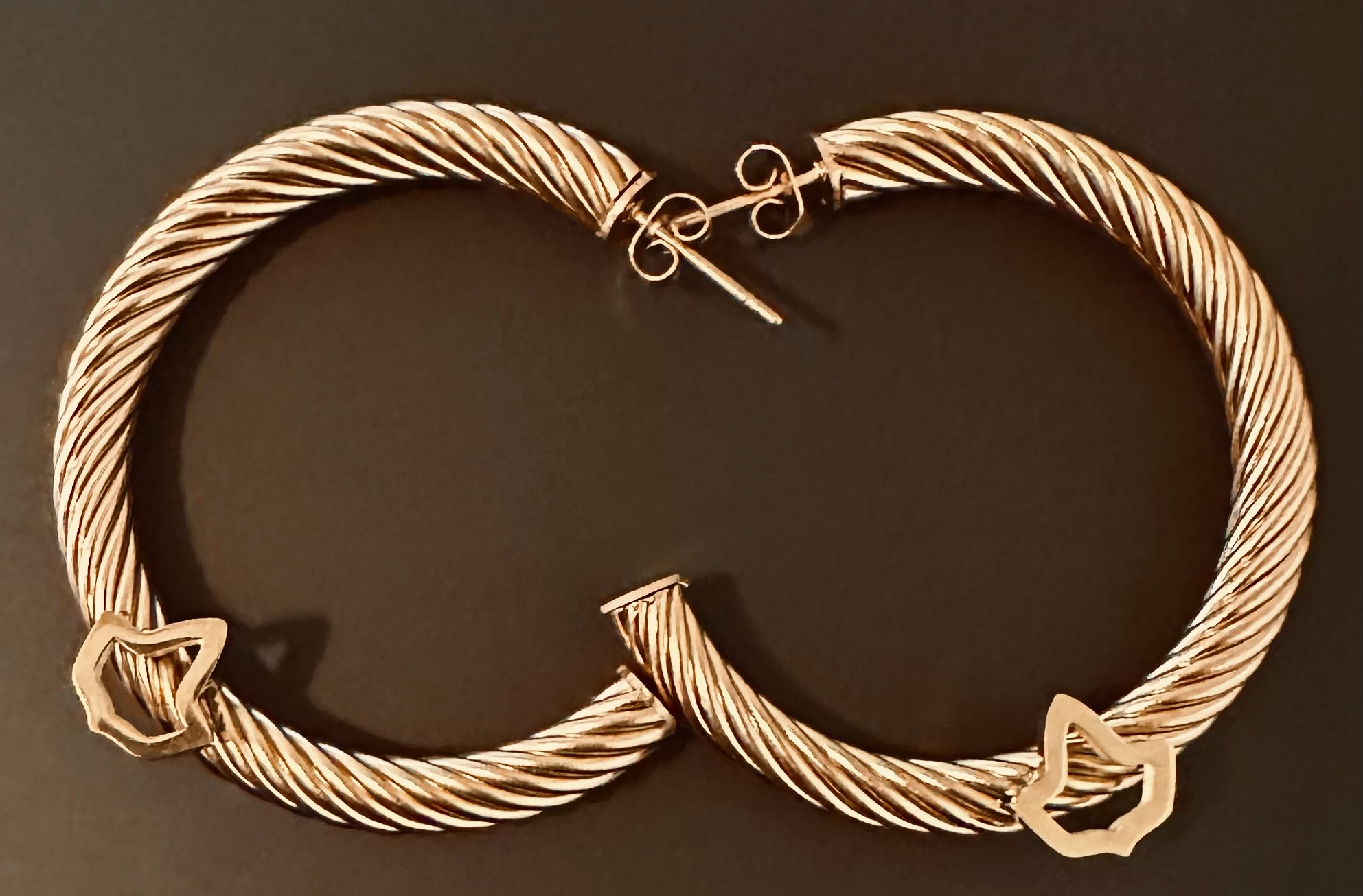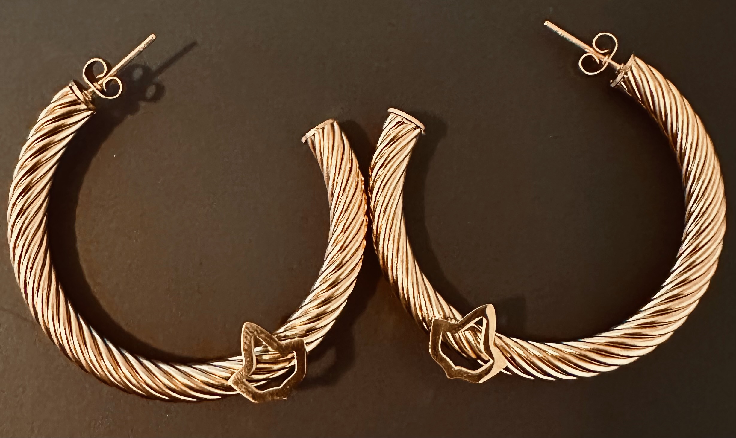 C-Shaped Premium Stainless Steel Rose Gold Cable Post Earrings with Ivy Adornment – 1.5 Inches