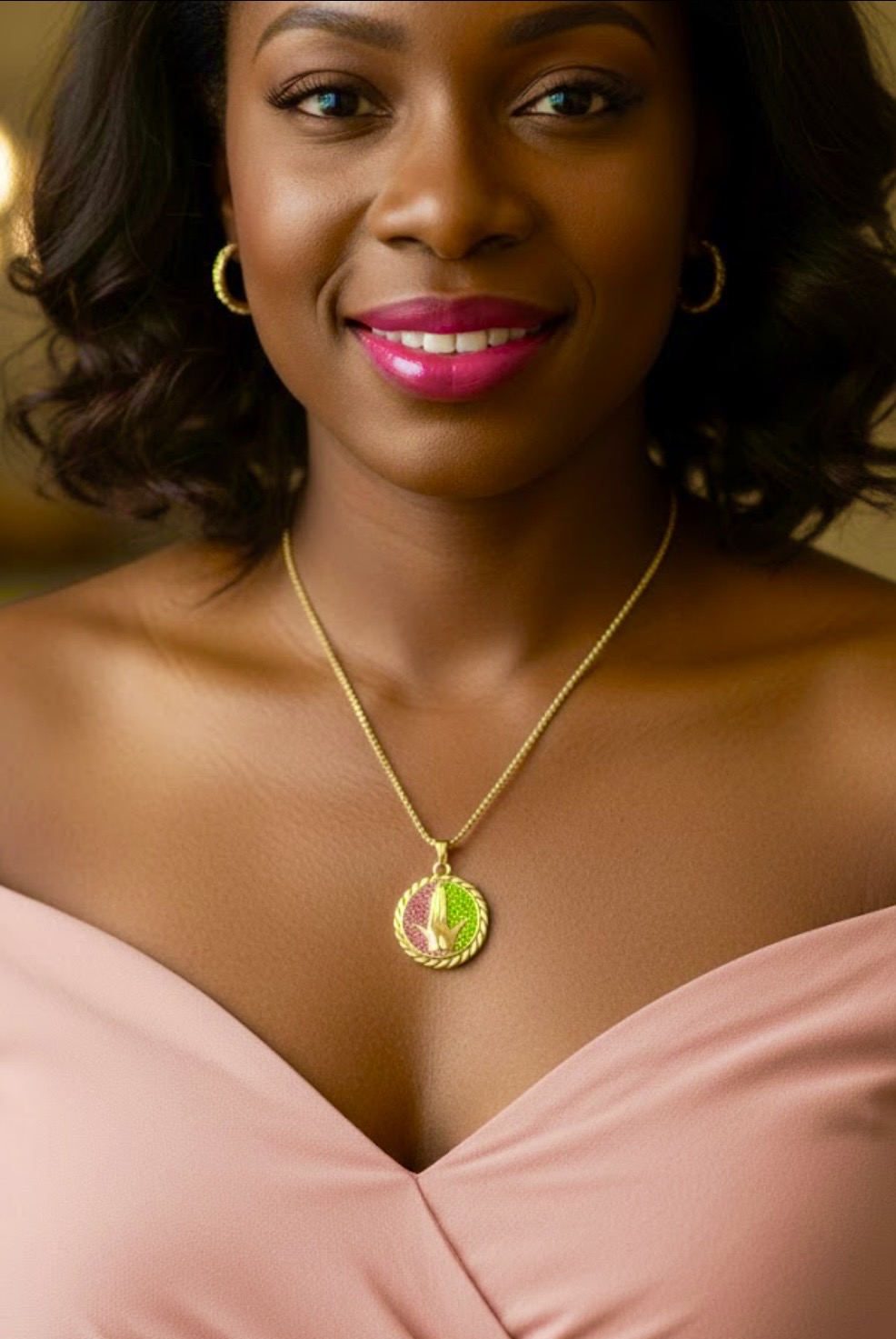 Elegant Ivy Hand Necklaces Pink & Green – Black, Gold, & Silver