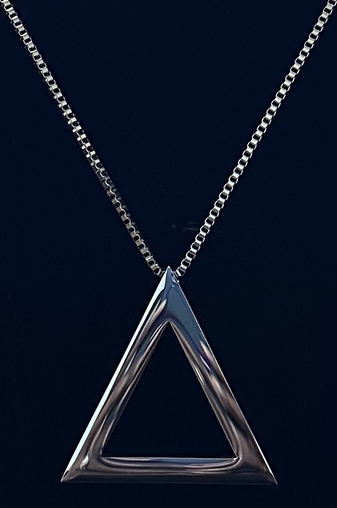 Elegant Large Silver DST Necklace with 18 Inch Box Chain and 2 Inch Extender. Delta Triangle Charm is 2 Inches Tall and Wide and .125 of an Inch in Diameter.  Made of Stainless Steel and will not Tarnish.