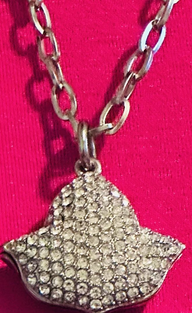 Gorgeous Elegant Silver Rhinestone Puffed Ivy Locket Necklace made with the Fashionable Chain Link Chain. The Locket is 1 inch tall and wide. The chain is 24 inches long and hangs 12 inches from the neck. The locket opens and allows for your special picture to be put inside. The necklace is available in Stainless Steel.