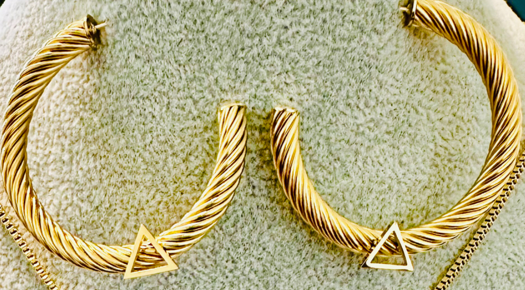 C-Shaped Premium Stainless Steel Black, Gold, and Silver Cable Post Earrings with Triangle Adornment – 1.5 Inches