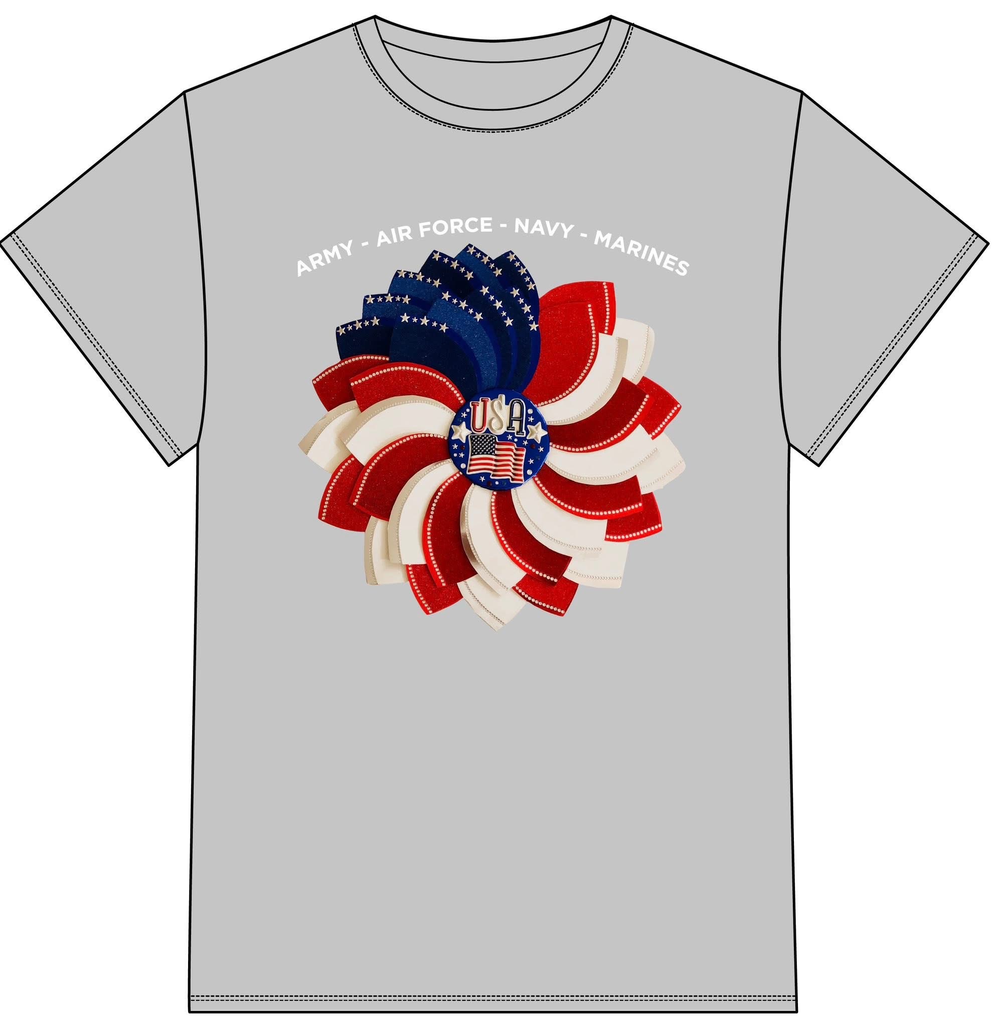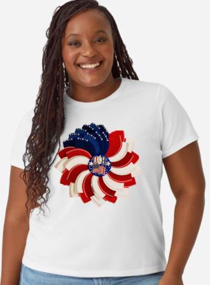 Beautiful Independence Day T-Shirt available.  Sizes: S, M, L, XL, 2XL, 3XL. These T-Shirts are very soft with a small amount of stretch. All proceeds go toward veteran support.