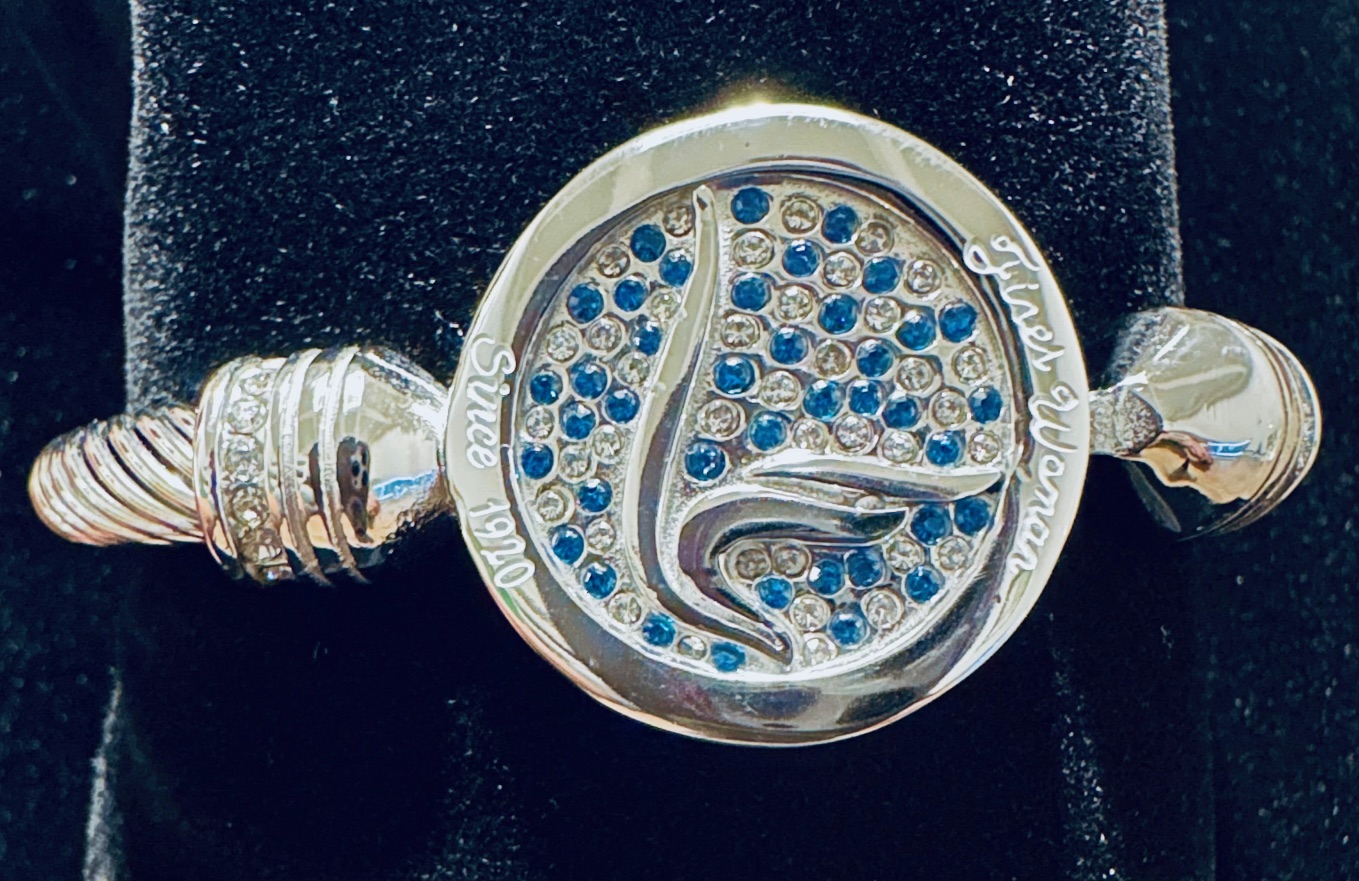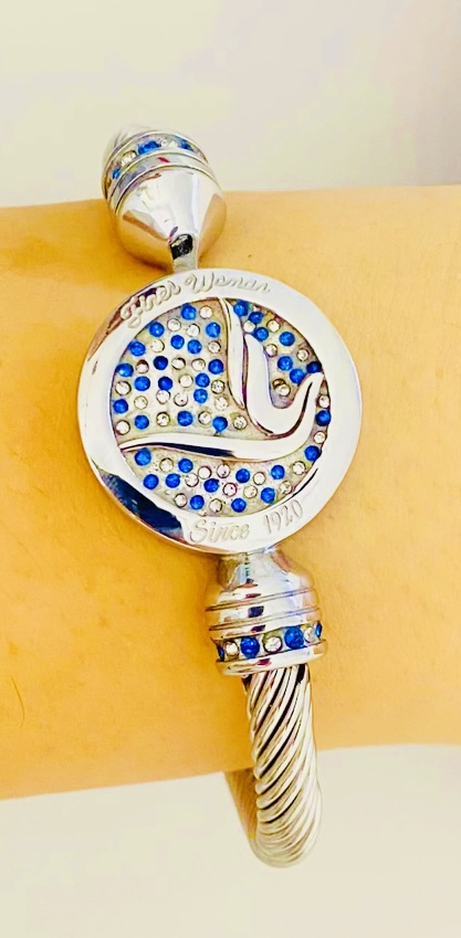 Zeta Silver Cable Dove Bracelet w/Blue and White Rhinestones