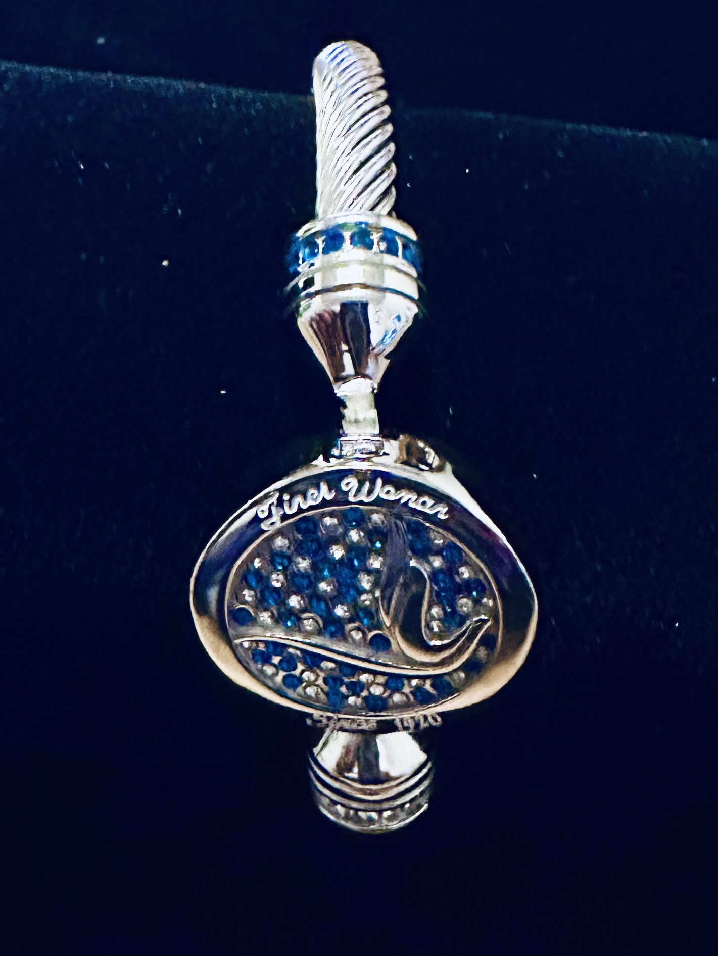 Stunning Silver Cable Dove Bracelet with Piercing Blue and White Rhinestones!